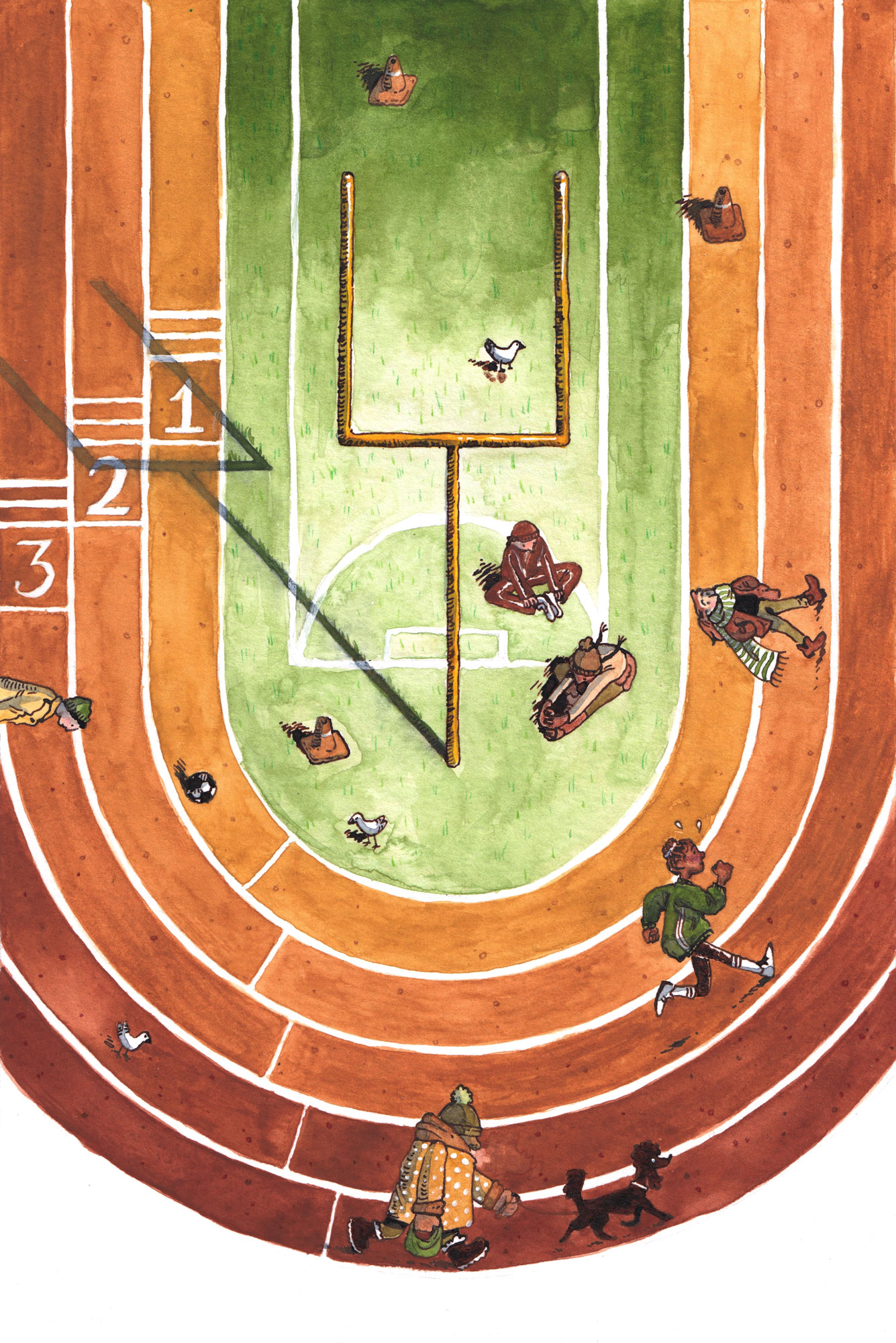 Illustrating an early spring morning at the public track; an ode to a neighborhood I used to live in.